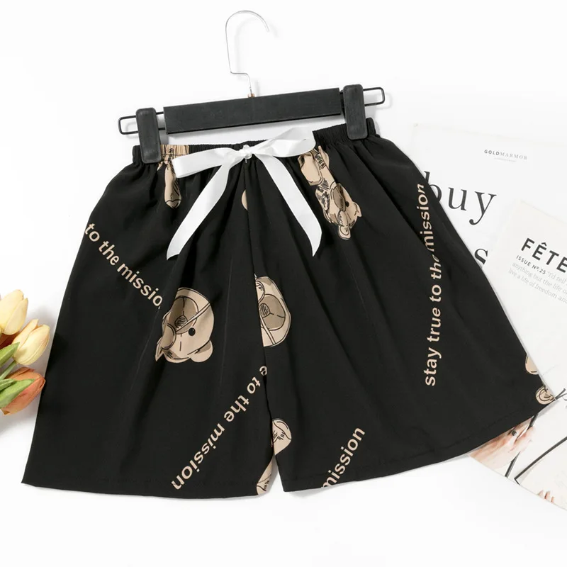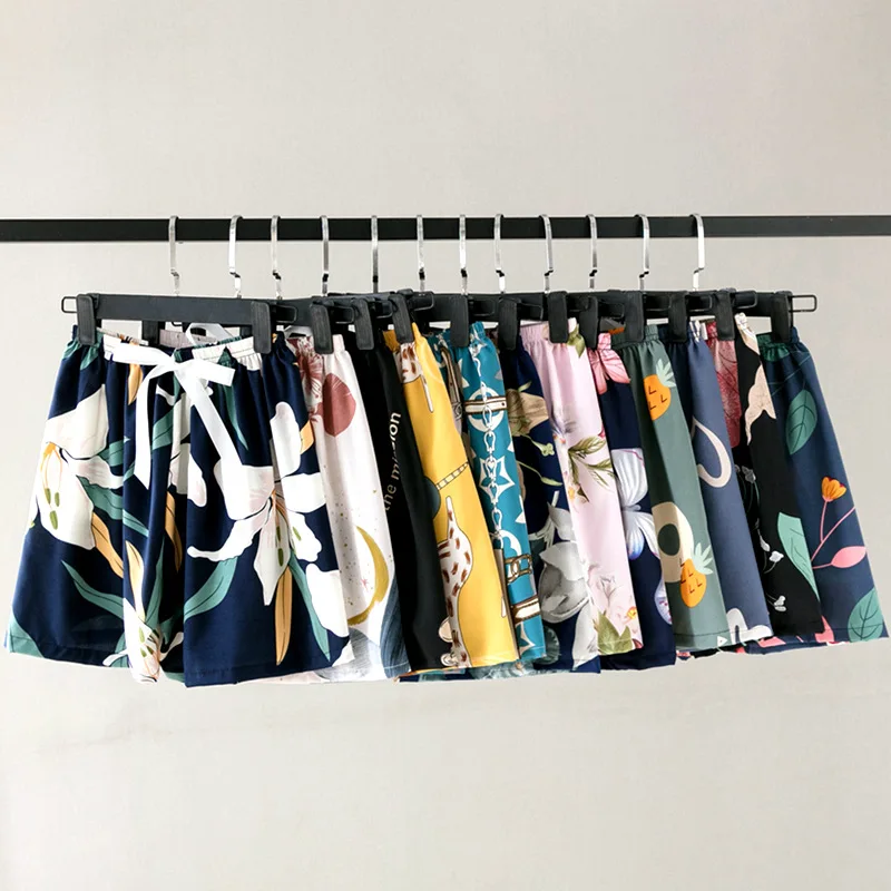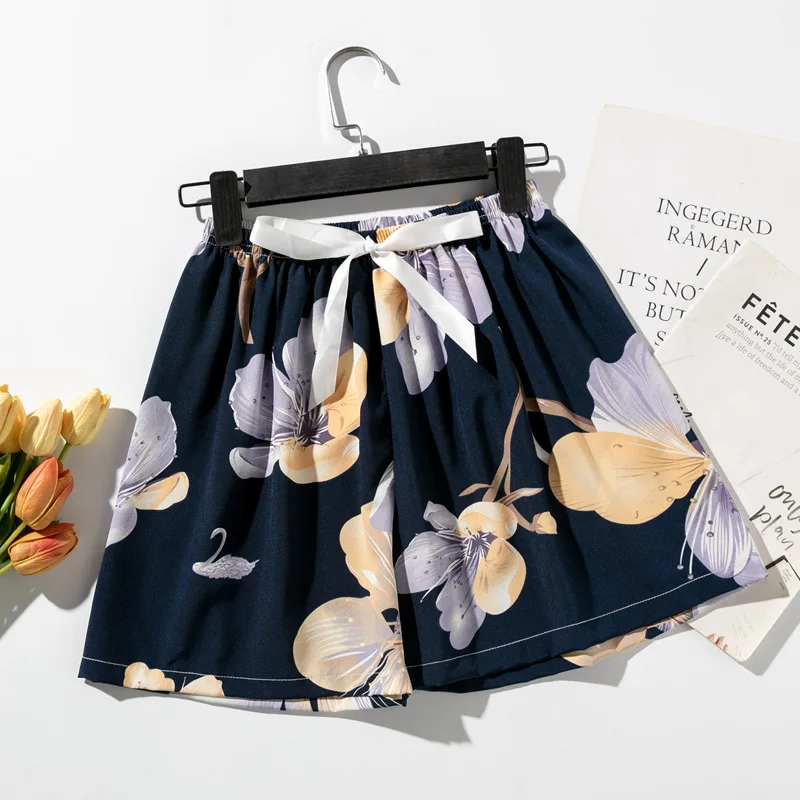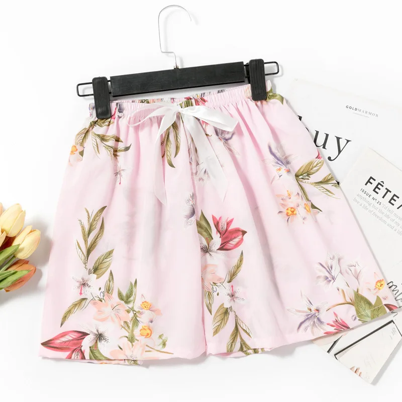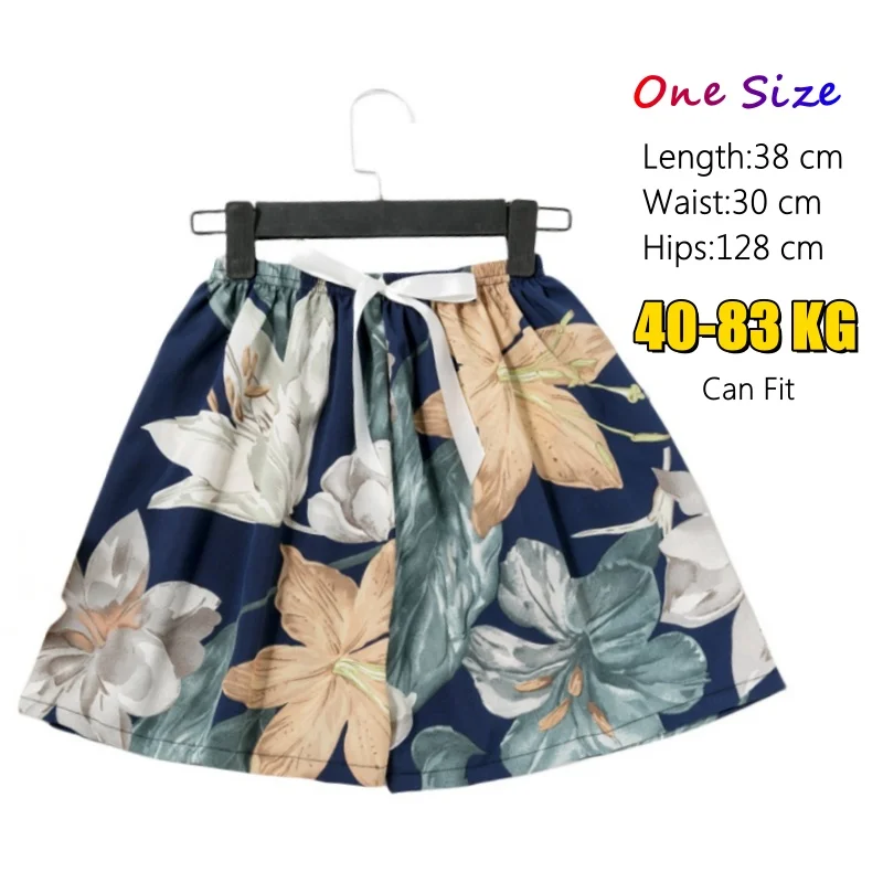 New Lady Summer Loose Shorts Elastic Waist Floral Print Plus Size Home-Wear Pants Wide Leg Women Casual Shorts